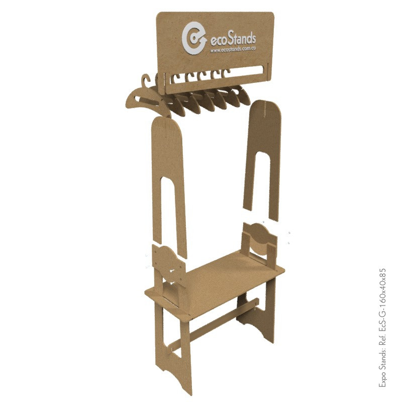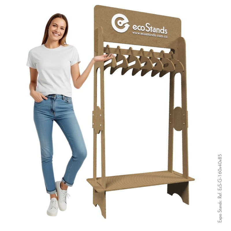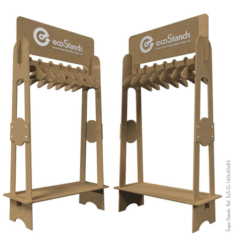 La gancera ecológica en madera Ref. EcS-G-160x40x85 es un exhibidor sostenible de fácil armado y desarme, que combina practicidad y responsabilidad ambiental, ideal para negocios que buscan reducir su impacto y diferenciarse con una propuesta verde.
