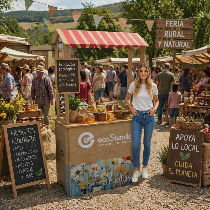 El counter promocional con techo Eco Display de Eco Stand, es una solución portátil de exhibición que combina funcionalidad, visibilidad de marca y diseño ecológico en un formato compacto.