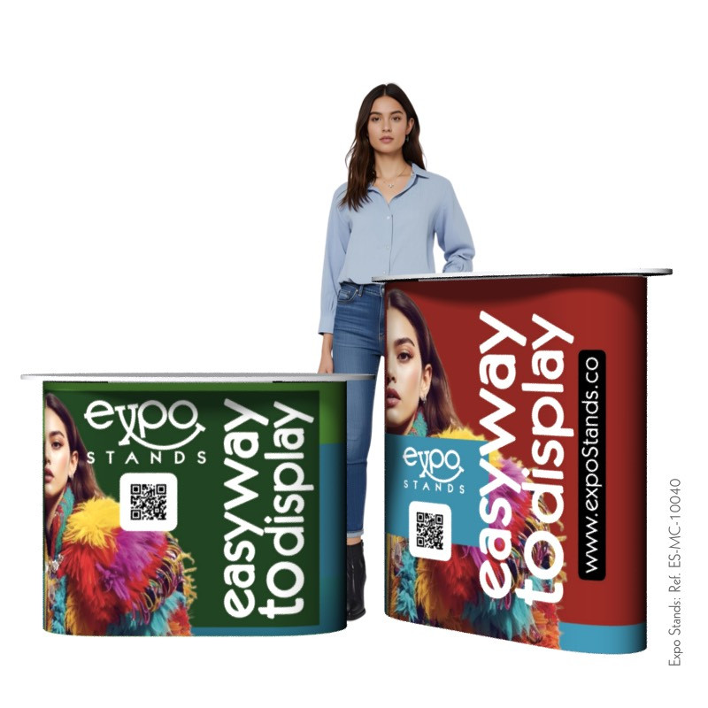 Mesa o counter portátil ExpoStands. Un robusto sistema, reistente, funcional, desarmable, transportable 100% portátil.