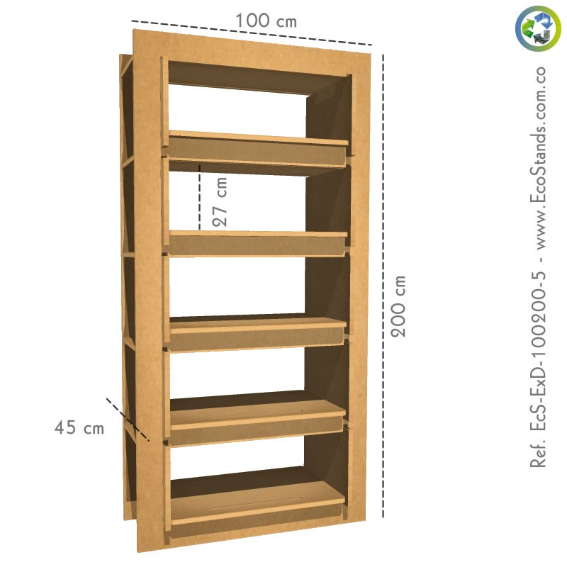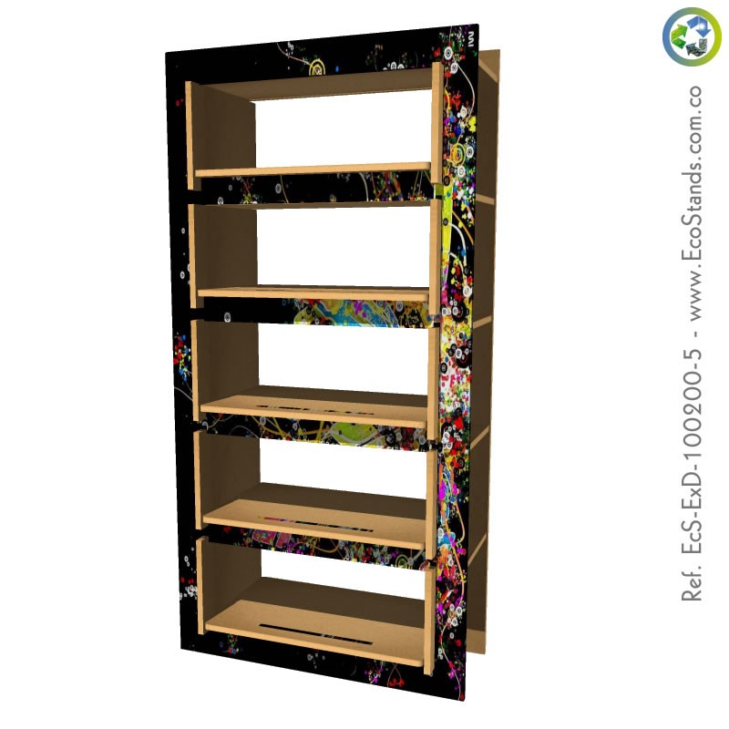 Repisa exhibidor de cartón Ref. EcS-ExR-100200-5 es un gran mueble diseñado para exhibir y lucir bien.
