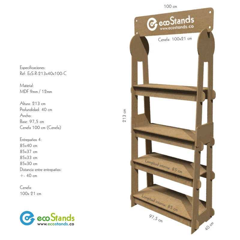 Repisa Escalonada en Madera MDF Eco Stand Ref. EcS-R-213x40x100-C