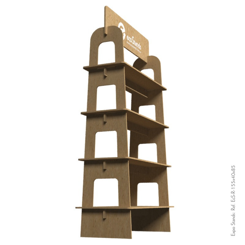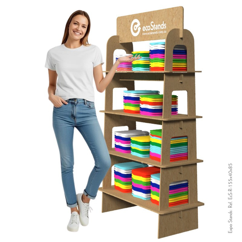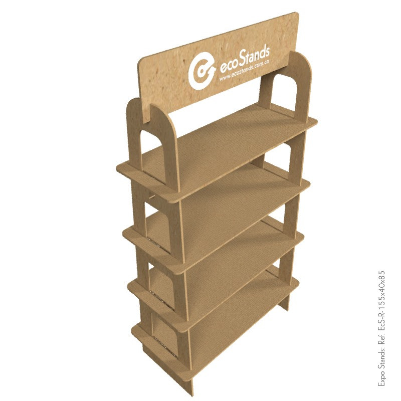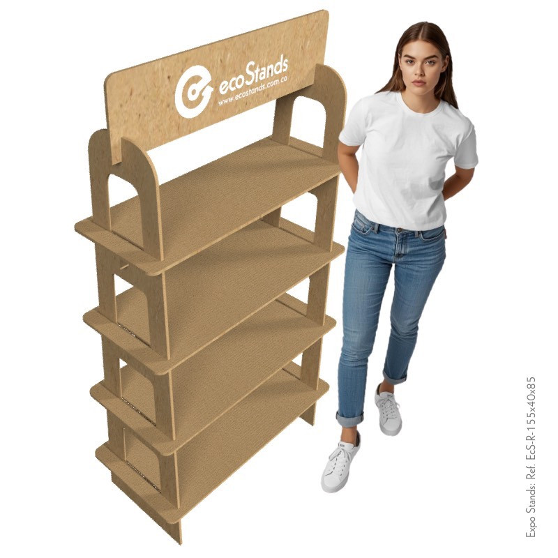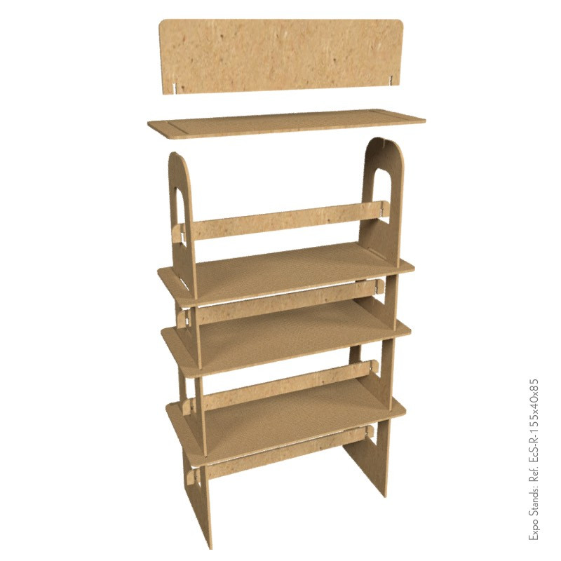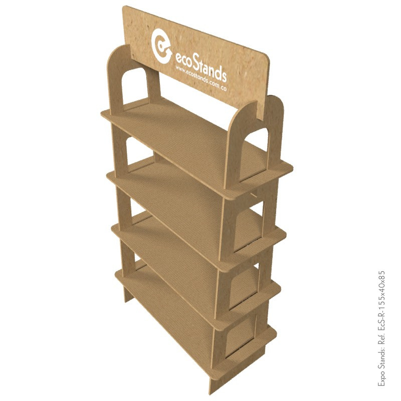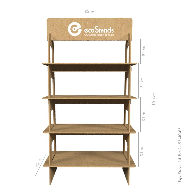 La repisa Eco Stand Ref. EcS-R-155x40x85 es un mobiliario desarmable, semiportable, elaborado en MDF.